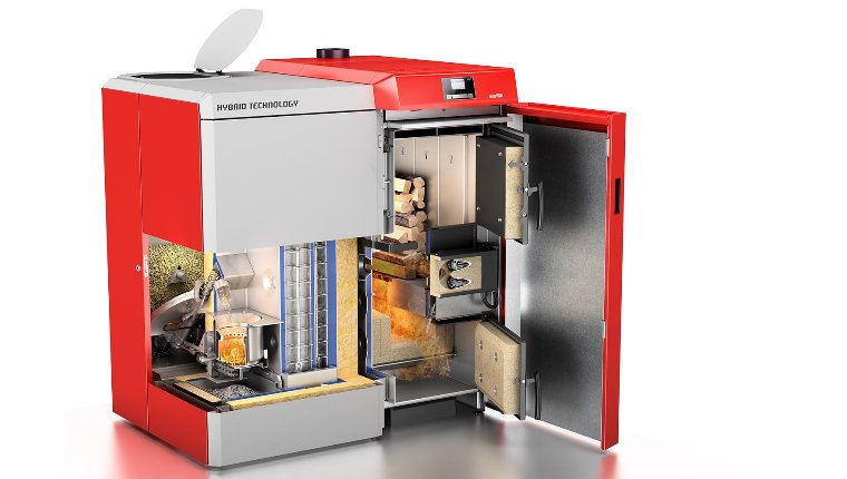 - Hibridna tehnologija združuje lastnosti kotla na pelete BioWIN 2 in kotla na polena LogWIN Klassik